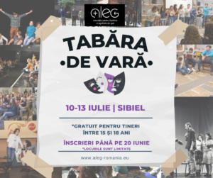 Ai între 15 și 18 ani, îți place teatrul, și vrei să te implici voluntar în campanii de combatere a discriminării? Asociația A.L.E.G. organizează în perioada 10-13 iulie la Sibiel o tabără de teatru social în sprijinul diversității culturale și nondiscriminării.